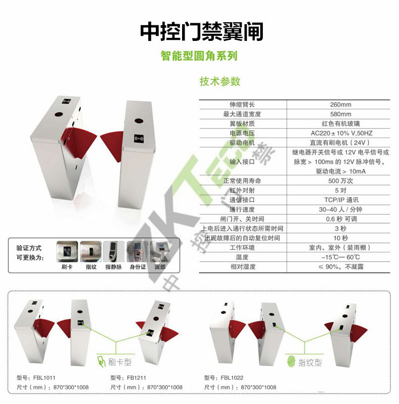 中控FBL翼閘 ‖ 智能通行 ?LED燈指示、防尾隨、防夾、零位自檢……