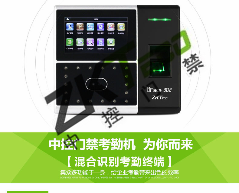 該產品采用了中控科技最新的ZEM600核心板,ZKFinger10.0指紋面部混合識別算法,容量大,識別速度快,集成高分辨率夜視紅外和彩色雙攝像頭功能,適用范圍廣,不受外界光線的影響,無論是在強光下還是在黑暗中也能進行有效識別。該系列已經通過了超過10萬面部數據庫長達2年的測試,同時該算法也在美國San Jose大學年度測試中名列前矛,在用戶舒適度方面獲得了最佳評分。iFace采用了嵌入式中控Multi-Bio CPU,主頻為630MHZ,可以處理高達1:20000的1:N速度,符合人體工程學的外觀設計,工業設計由德國專業公司主導完成,模具采用了PC材料+蝕紋工藝+鏡面工藝,采集比對就如照鏡子一般,支持4.3寸全觸摸TFT,僅有6個狀態功能鍵,其它按鍵在TFT上全觸摸操作。標配TCP/IP通訊方式,支持跨網段跨網關連接。